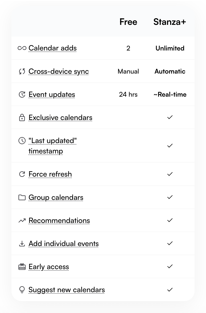 How can you help? Be becoming a Stanza+ member, starting your own calendar (it's free!), or nominating a community for our Creator Fund.